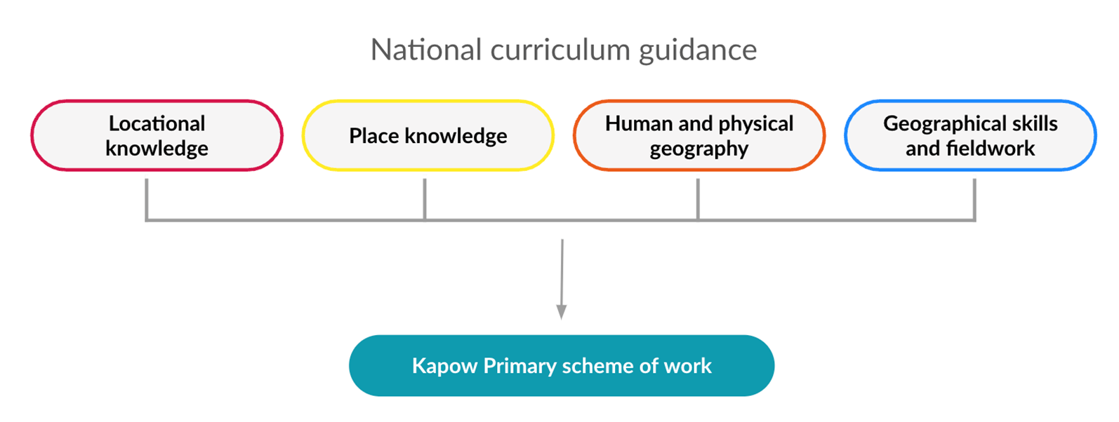Kapow Primary’s Geography scheme of work aims to inspire pupils to become curious and explorative thinkers with a diverse knowledge of the world – in other words, to think like geographers. The intention is for pupils to develop the confidence to question and observe places, measure and record necessary data in a variety of ways and analyse and present their findings.